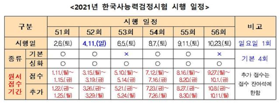 2021년도 한국사능력검정시험 시행 일정 발표.